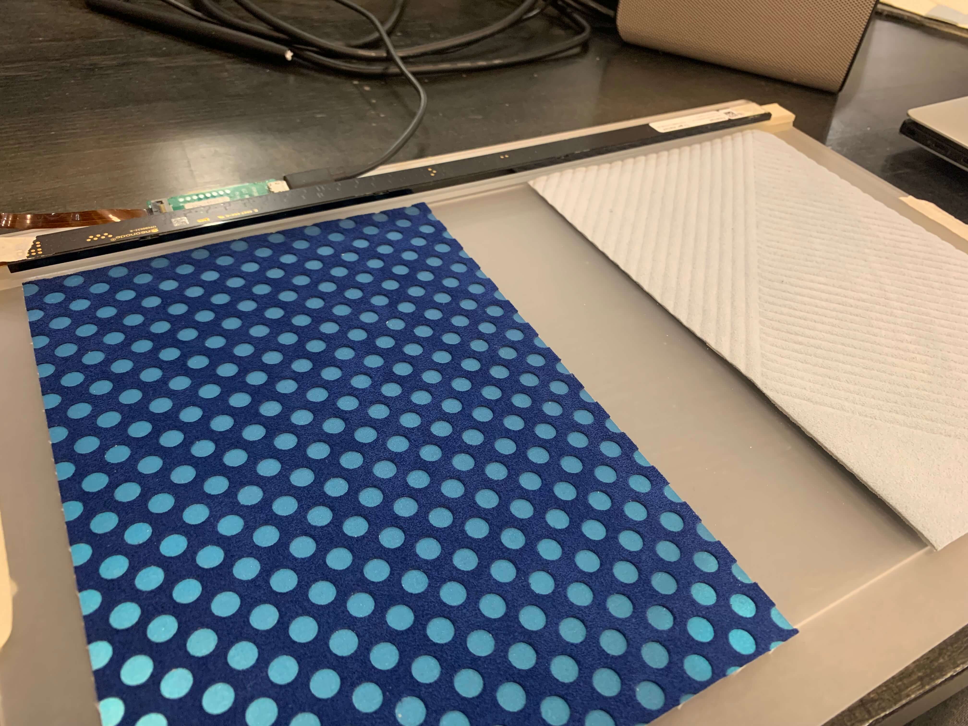 An I2C trackpad visualization, Azoteq TPS65 trackpad sensor as input for ProtoPie. A platform to try different trackpads and explore material overlays.